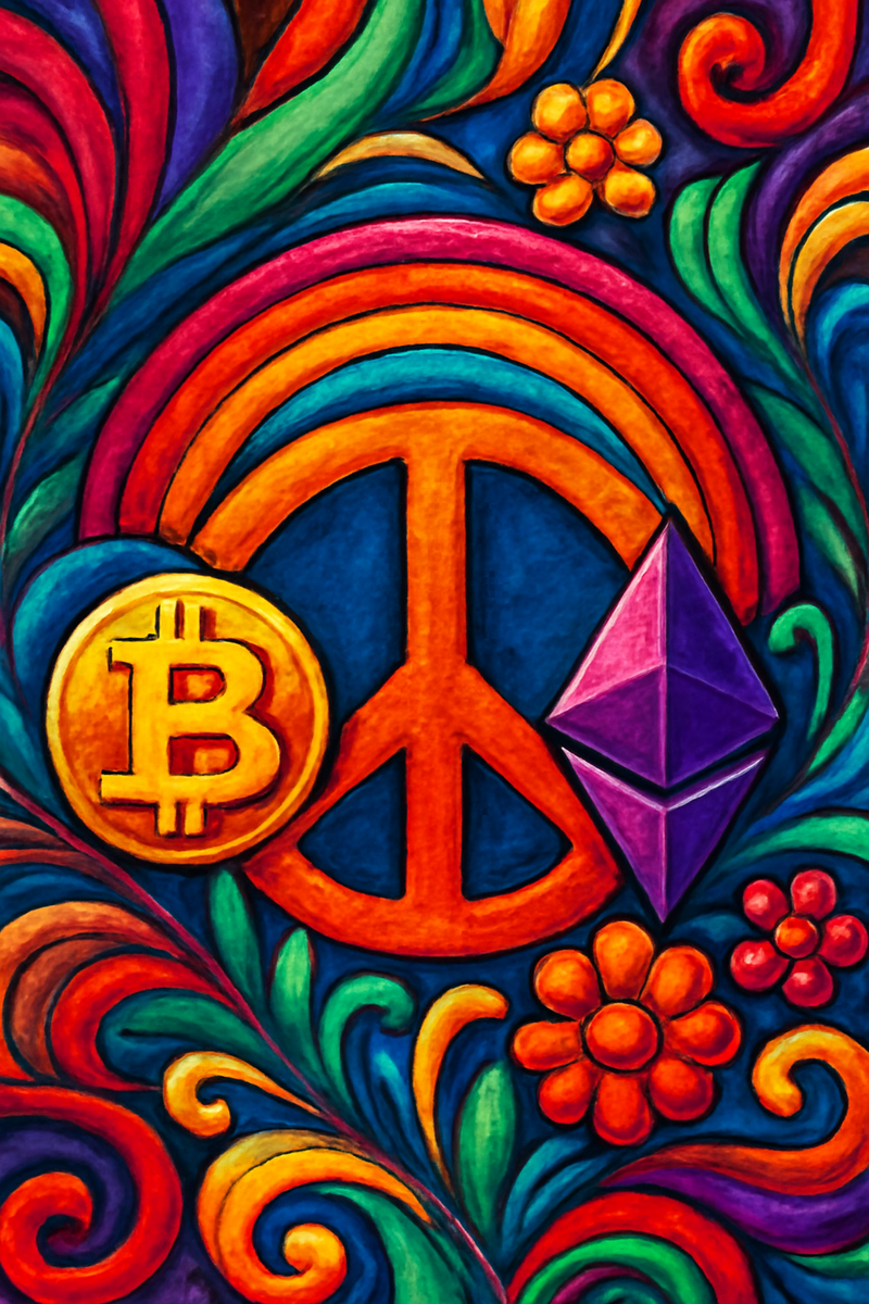 In the Hippie crossover, that truth becomes a journey — tie-dye flow, mushroom wisdom, and decentralised calm woven into prints meant for festivals, forests, sunrises, and stillness. It’s where psychedelic energy meets grounded freedom, and where self-sovereignty becomes a lifestyle rather than a concept.